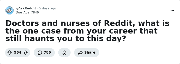 Someone recently asked medical professionals, "What is the one case from your career that still haunts you to this day?" and some of the replies might leave you heartbroken. Others could send chills down your spine.