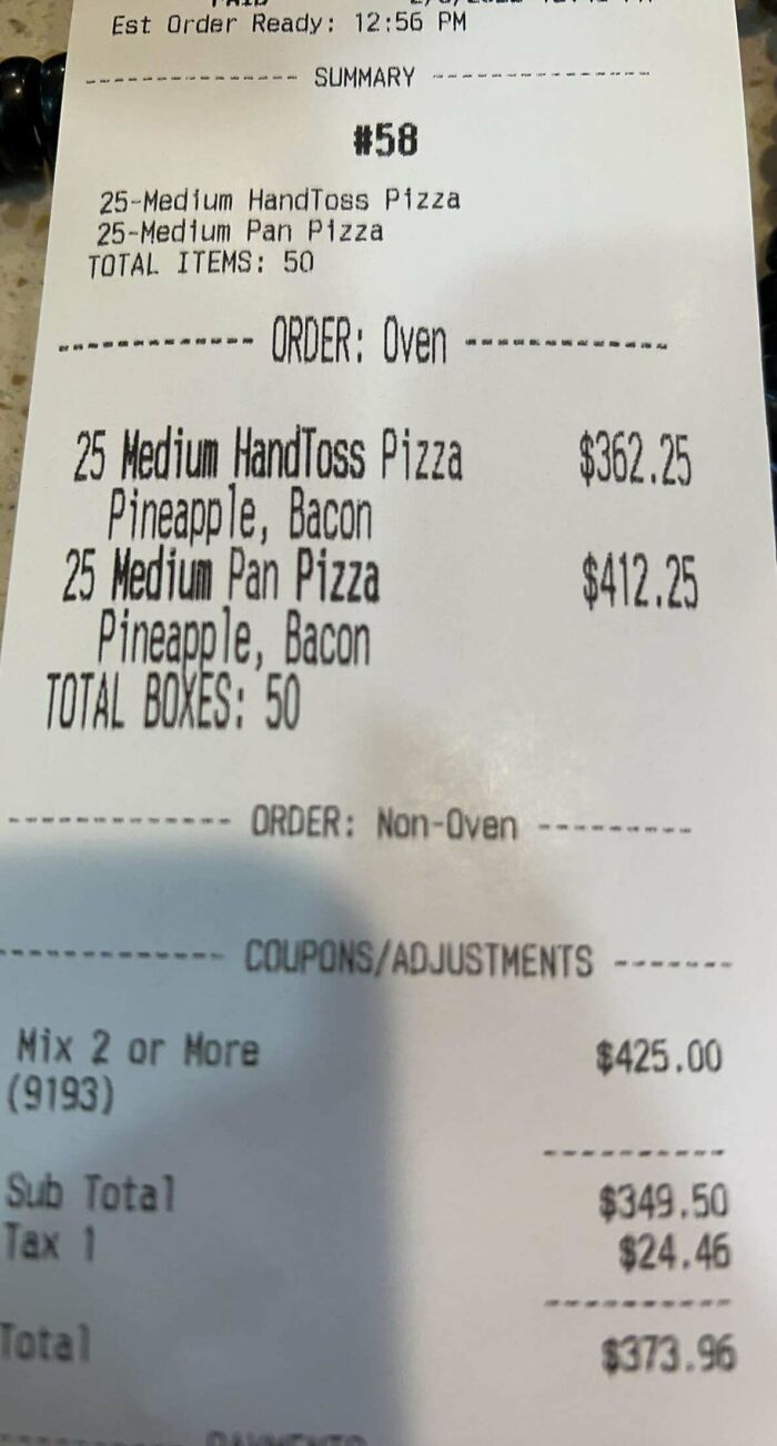 Load More Replies...Thats more than one pizza every two minutes. Even if they weren't interested by other customers, that's very impressive.