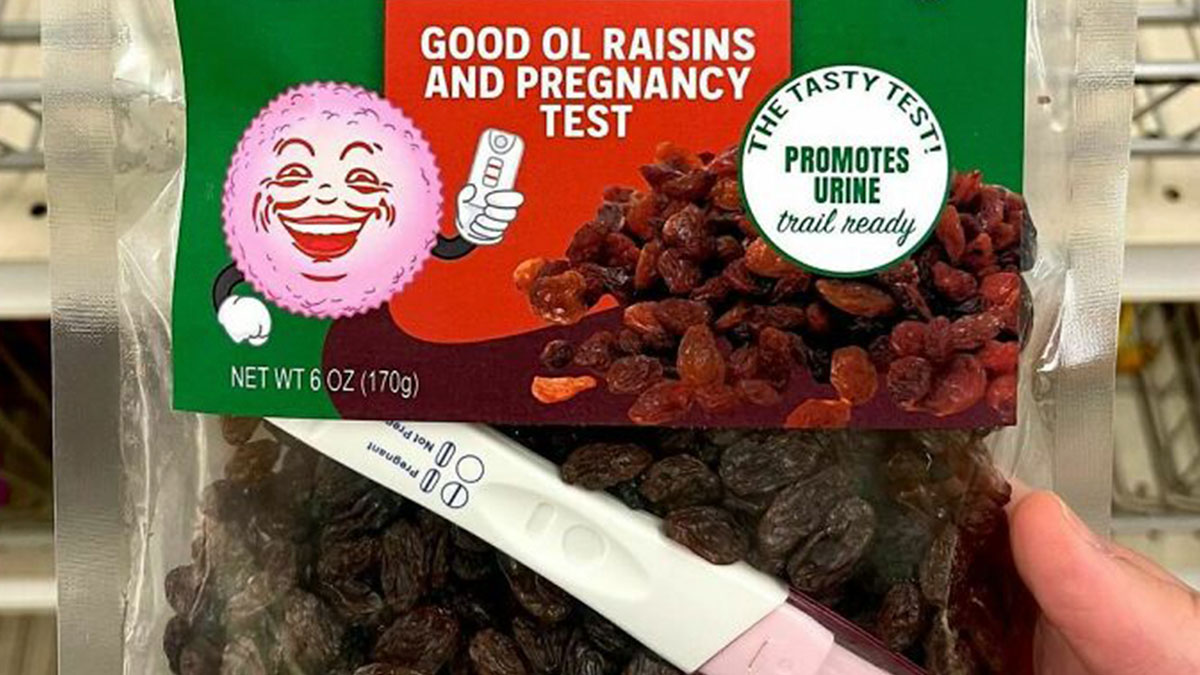 Because who doesn't think of pregnancy tests when thinking about raisins?