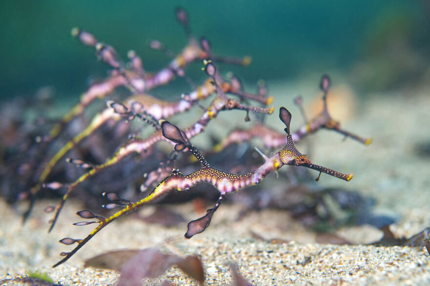 "Diving with weedy seadragons is always an experience. On rare occasions we even get to see juveniles, who despite their beautiful colourations, camouflage exceptionally well," says photographer Steve Walsh. "The behaviour captured in this image is something else though. Weedy seadragons are usually solitary. Schooling behaviour like this is largely unheard of. I’m so grateful to have witnessed it. It goes to show we still know so very little about these fish."