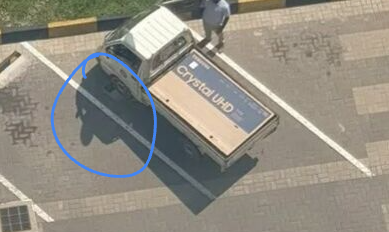 The angle makes it look like the guy is taller than the truck...