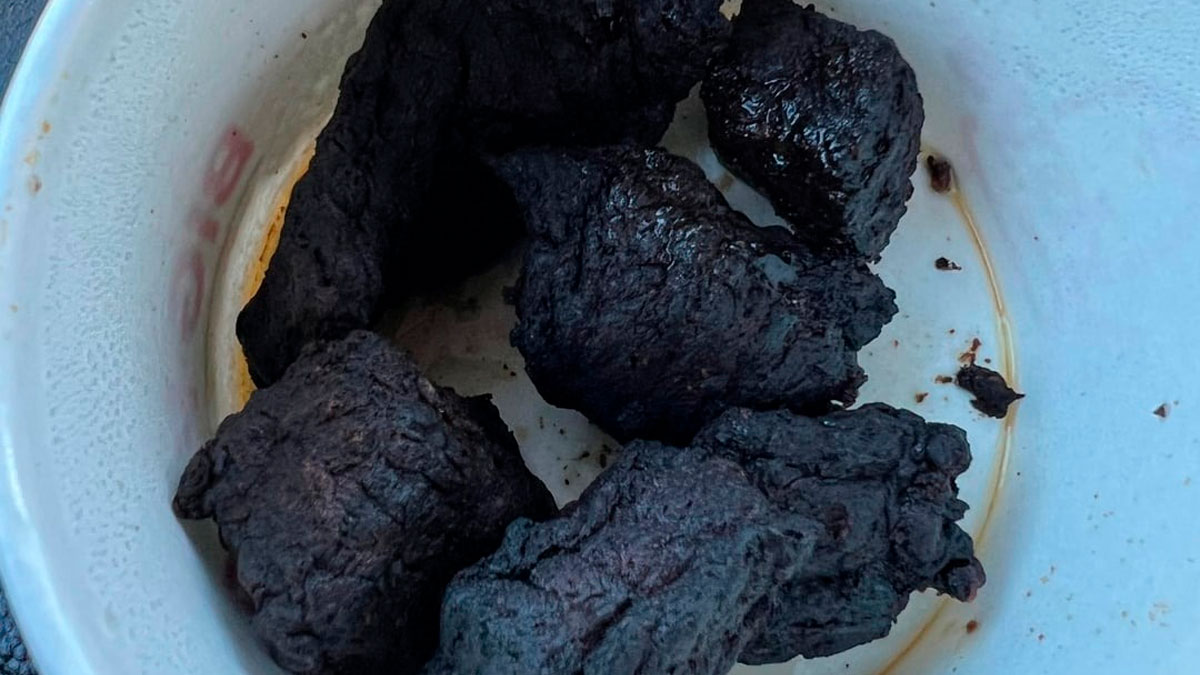 Paid nearly $6 at my local DD for this half full cup of mushy hash browns a turd of “brisket” a handful of scrambled egg crumbs and barely a squirt of queso.