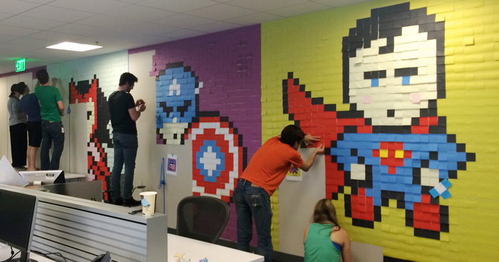 Worker Uses 8,024 Post-It Notes To Turn Boring Office Walls Into Superhero Murals