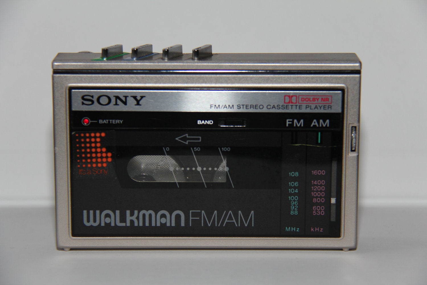 I had a kick-butt Sony Walkman that was just a little bigger than a cassette case. To put a tape in, you had to expand it by pulling the player head outward. This one: il_fullxfu...460900.jpg