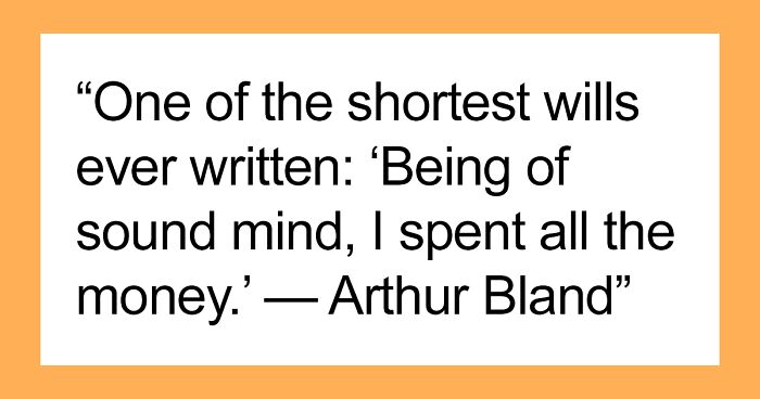 "One of the shortest wills ever written: "Being of sound mind, I spent all the money." —Arthur Bland
