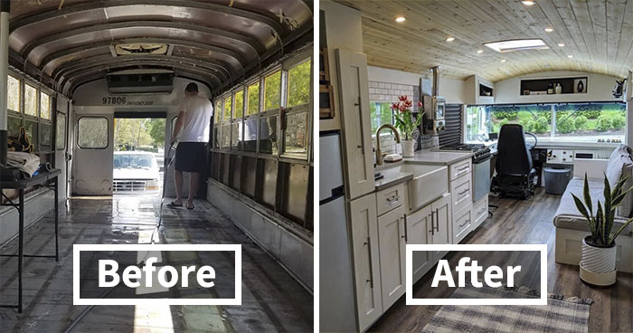 Couple Spends A Year And A Half Converting An Old ’90s School Bus Into A Cozy Home, And It’s Worth All The Work