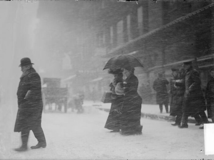 Two Women Crossing The Street During A Blizzard, New York, 1903