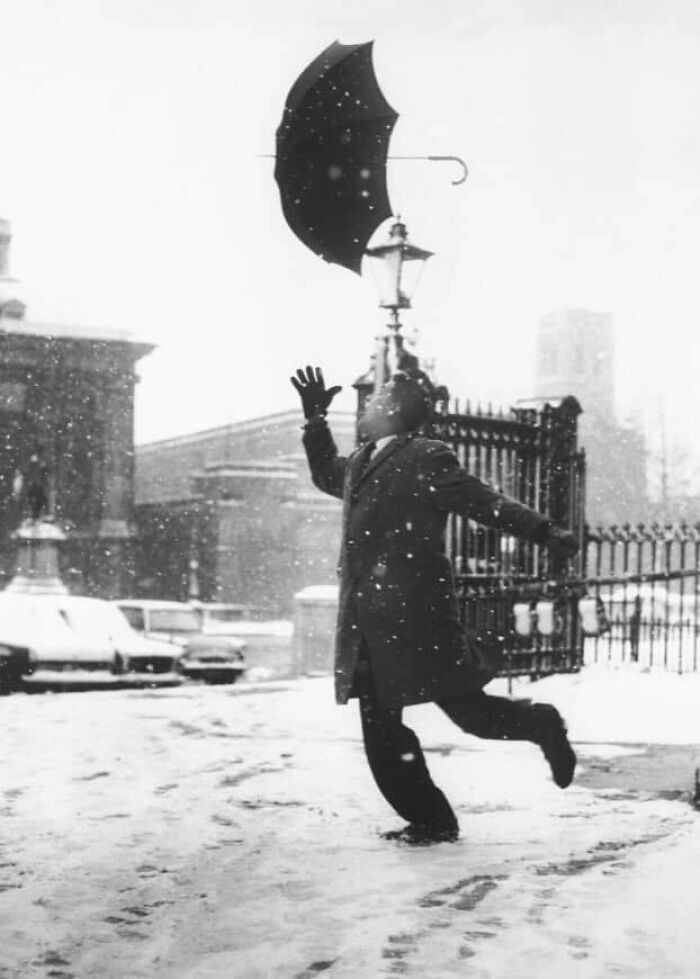 A Man Looses His Umbrella On A Windy And Snowy Day, 1962