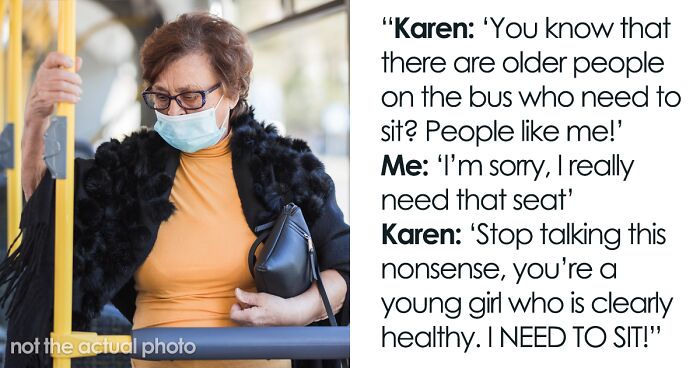 Redditor u/PigeonLoverAkane shared how a woman scolded her for not giving up her bus seat. The “Karen” based her demands on the fact that the passenger looked healthy, when she was actually in a lot of pain. Scroll down for the full story in the OP’s own words.