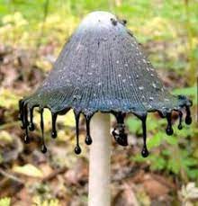 My yard has some new mushrooms. They look like black jellybeans on a skinny stalk. I couldn't find them in an image search.