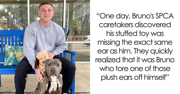Meet Bruno, A One-Eared Pitbull Who Went Viral After His Caretakers Discovered He Had Pulled Out The Same Ear From His Plush Toy