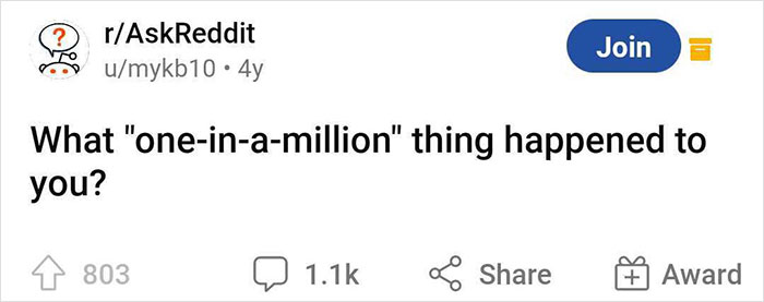 The folks over on r/AskReddit shared their most jaw-droppingly impressive stories about their ‘one-in-a-million’ experiences. From surviving horrible accidents and finding their stolen things to winning the genetic lottery and living to tell the tale after successive lightning strikes, these people are some of the luckiest folks to ever walk on God’s green earth. (Or unluckiest if you take a slightly different perspective.)