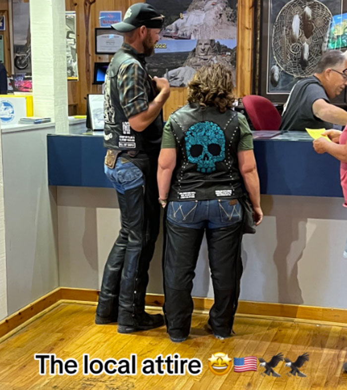 What's the problem here? These people are traveling by motorcycle. Chaps are protective. Not a single flag or eagle in site, yet we're gonna throw those emojis on the comment? OP sounds like a jerk.