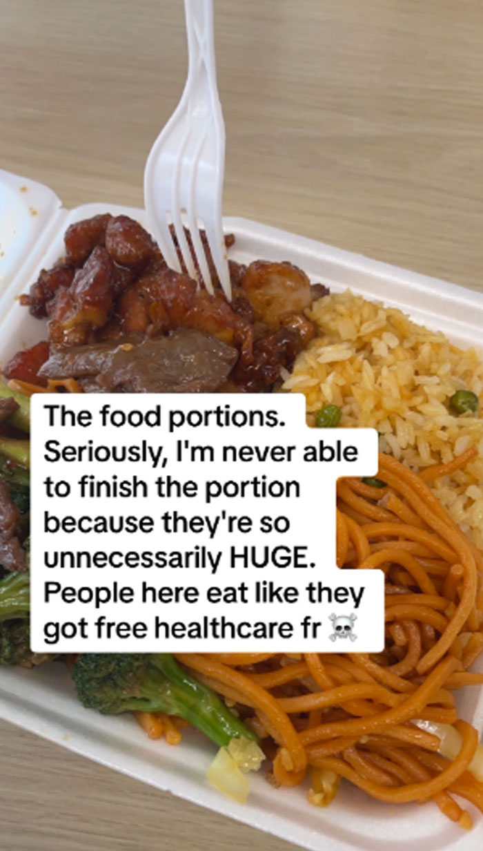 For example, in the US, food portions are way bigger compared to China, where they serve food 'family style' for everyone to share. It's quite funny to see the expressions on the faces of Chinese tourists at places like The Cheesecake Factory when their enormous dishes arrive.