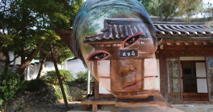 Yoon identifies herself a visual illusion artist. By using watercolors, she can create amazing illusions of lips, eyes, and the overall face, often blending herself into a scene. All of her creations are so stunning, it's hard to believe she doesn't even use photoshop! You can check out some of her mind-blowing illusions below and be sure to follow her on Instagram.