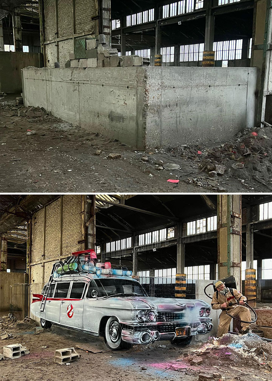 The artist has previously revealed to Bored Panda that it was his school friend who got him interested in graffiti art. Pierrot's career as an artist started around 20 years ago in abandoned factories and the street. His love for graffiti has led him to create realistic 3D paintings that are both unsettling and fascinating.
