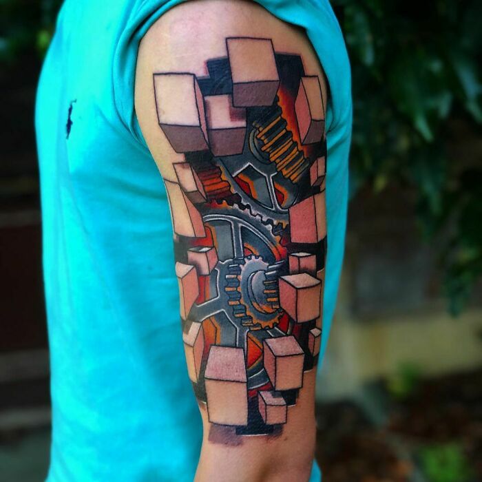 So, what makes for an excellent optical illusion art piece, besides the obvious - the ability to break our brains and our eyes with the incredible things we’re seeing? Well, first and foremost, such a tattoo design requires lots of planning and deep knowledge of perspective and sometimes even physics. So, basically, rocket science in the tattoo world! Besides all that, for the optical illusion to truly perform its beautiful deceit, placement plays a huge role. After all, our bodies bend and curve, and it might both heighten and lessen the effect if placed wrongly. And lastly, such a cool tattoo design requires tons and tons of skill from the artist, so choose your tattooist wisely!