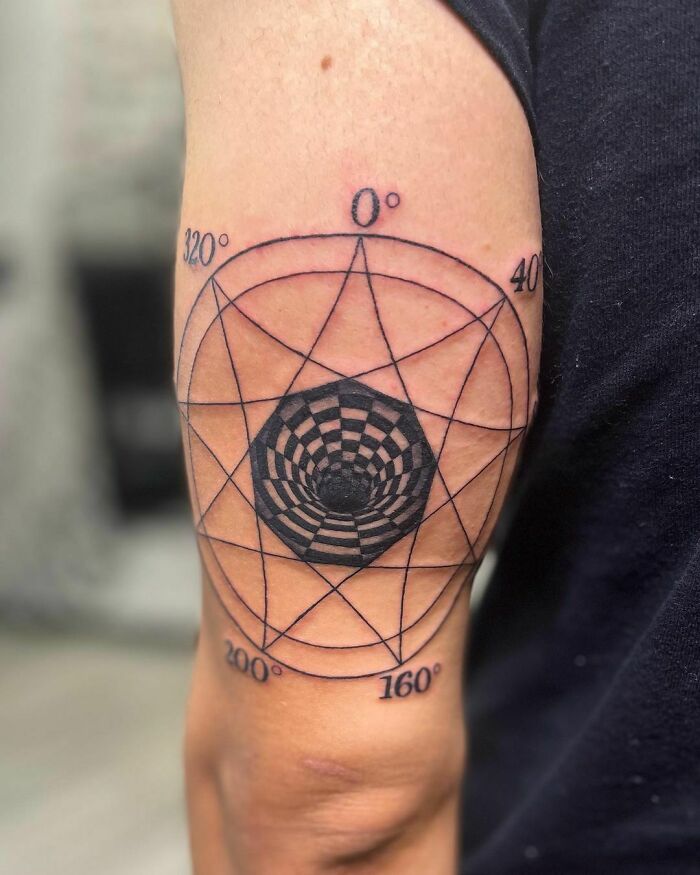 While optical illusion art paintings always stay static, tattoos are bound to move when the skin stretches. Fortunately, illusion tattoos can play into this. Unlike trippy tattoos, whose impact comes from the double vision effect or colors, illusionary tattoos manipulate our eyes. Optical illusions, in the form of tattoos, create endless loops or bottomless pits, allowing our minds to look for the end, which doesn’t exist.