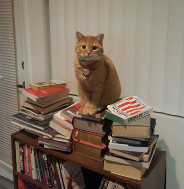 He’s a four-month-old orange tabby, and we’re looking for a name relating to a fictional character, as that was the inspiration for his siblings’ names.