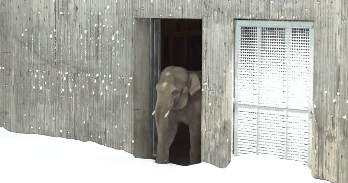 When the Oregon Zoo had to close because of snow, a worker skied in to check on the animals. Turned out they were having a blast in all that snowflaky goodness! We see polar bear Nora playing in the white, sea otters ‘otterly’ enjoying the snow, and harbor seals loving the icy swim… However, the best bit is Samudra the Asian elephant, probably seeing the snow for the first time – and its reaction is EVERYTHING.