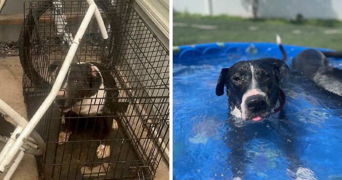 Since his adoption, this sweet pup has a new lease on life. He spends his days playing in the sunshine, lounging in a kiddie pool, and enjoying the unconditional love of his forever family. A series of heartwarming photos sent by his adopters show him splashing happily with a canine companion, his eyes full of trust and contentment – a stark contrast to the fear and confinement he once knew.