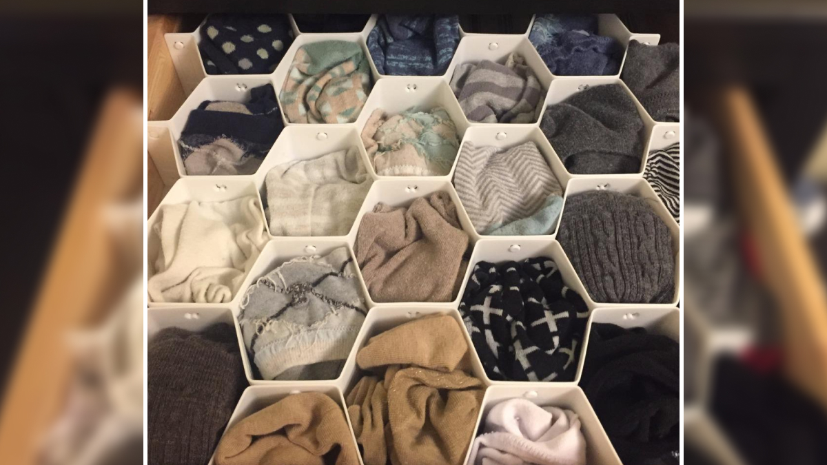 Your Sock Drawer, Currently A Lawless Pit Of Chaos Where Single Socks Go To Mourn Their Lost Partners, Can Finally Find Some Zen With A Honeycomb Drawer Organizer