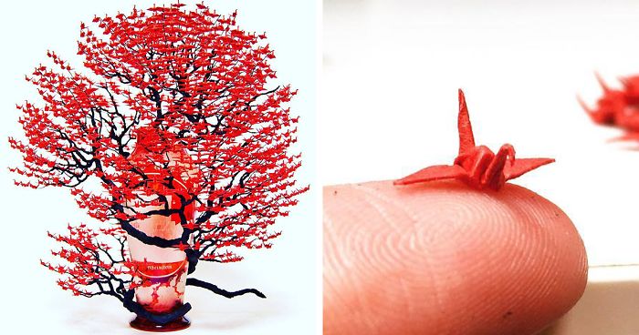 1000s Of Miniature Origami Cranes Turned Into Incredible Bonsai Trees By Naoki Onogawa