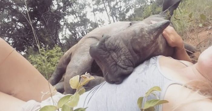 Baby Rhino Who Lost His Mom To Poachers Loves Sleeping With His New Human Mom