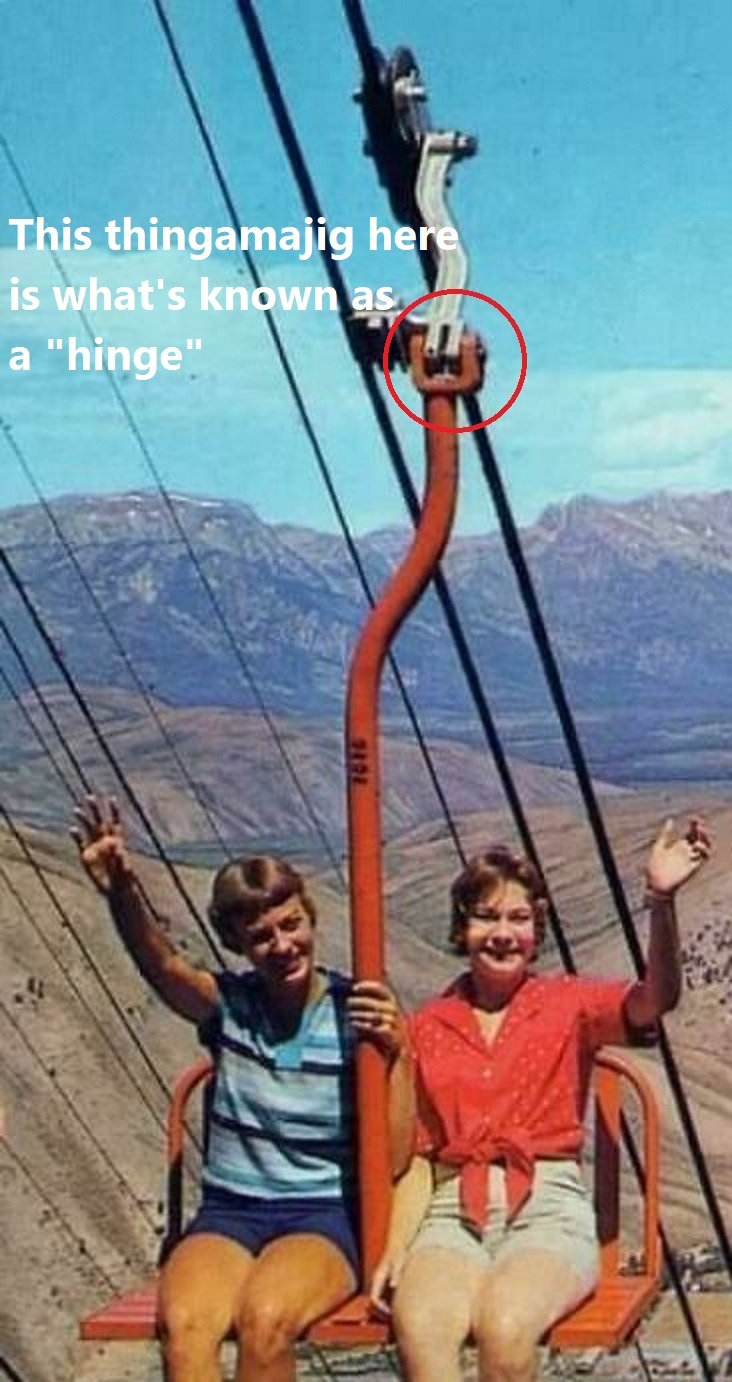 https://www.boredpanda.com/lost-in-history-twitter/ "Photo taken in Snow King Resort, Jackson, WY. Operational between 1951 and 1978, it replaced a similar single seater arrangement operational since 1946, that reused posts and cables from an ore tram built in the '30s for a mine close by. It was replaced in 1981 be a modern Doppelmayr Garaventa double chair lift. Removed in 2014. There are several photos like this floating around because this was taken in a spot that was specifically designed for touristic photos, to give impression of being at height, while in reality the seat was barely 3 meters from the ground for the whole run. The uncropped photos show the bushes/small trees just below. It was not exactly safe, but forced perspective is the main factor here."