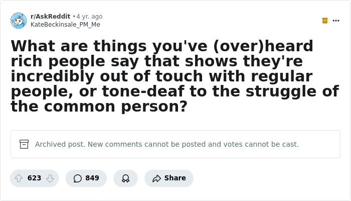 Today, we’re looking at some of the most out-of-touch and tone-deaf things that internet users have ever heard rich people say aloud, as shared in an intriguing thread on AskReddit. You’ll find their insights below.