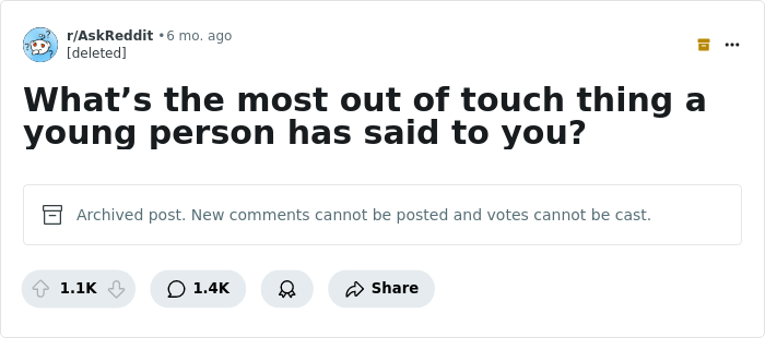 Today, we’ve compiled a list of moments where people shared the most hilariously out-of-touch things young people have ever said to them. Some are funny, some are mildly alarming, and a few might make you question reality. If you’ve ever felt ancient after chatting with someone under 20, this list is definitely for you.