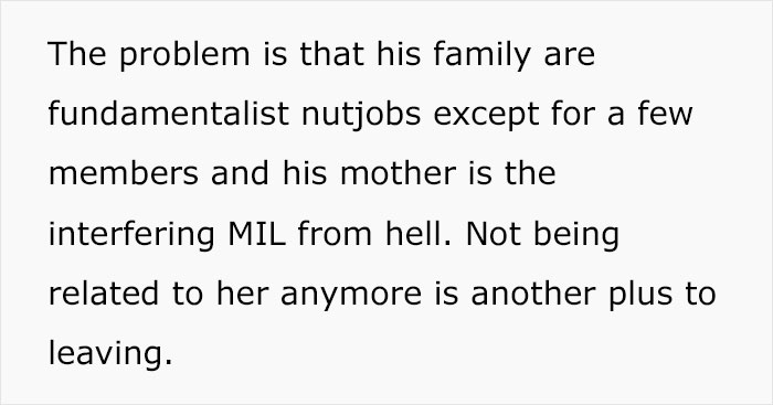 So, the two split, but it doesn’t end there. For context, the ex’s family are fundamentalists, with the mother being very extreme and intrusive in the now ended relationship. They don’t believe in divorce, so this move immediately prompted the mother-in-law to interfere and effectively go nuts on OP.