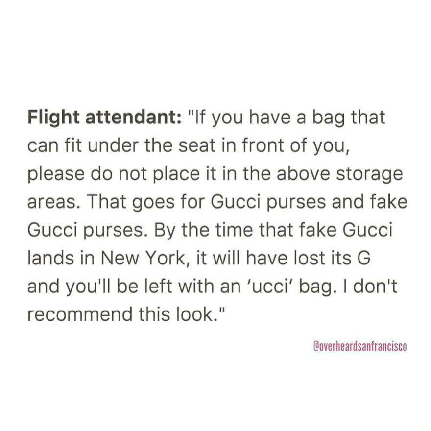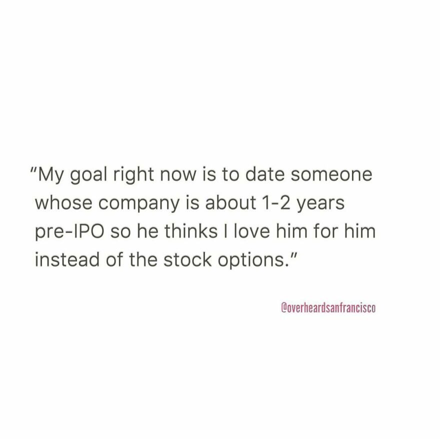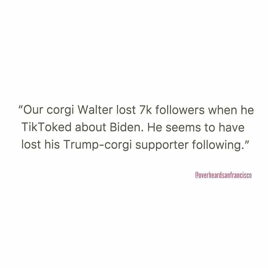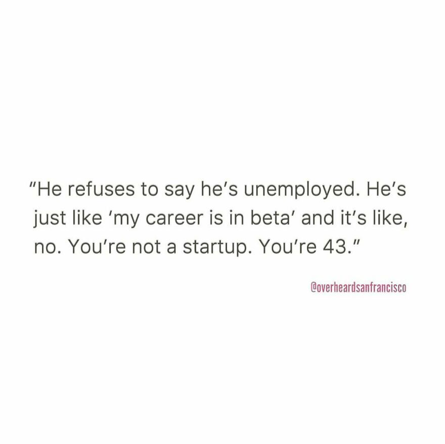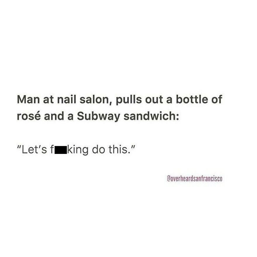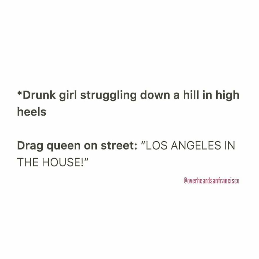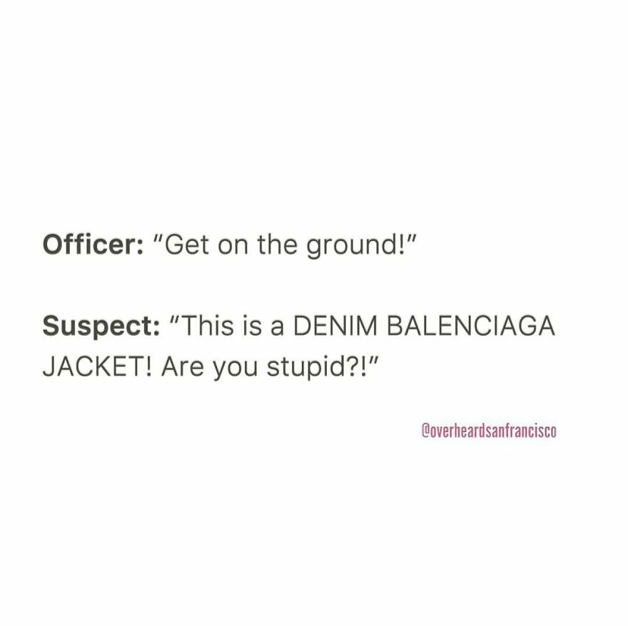 And here comes the fittingly named Instagram account Overheard San Francisco. Like its big brothers, @OverheardLA, @OverheardNewYork and @OverheardLondon, it is dedicated to sharing the funniest eavesdropped interactions in San Francisco and the Bay area. Jesse Margolis started Overheard LA in 2015 after listening to a stereotypical conversation between two Angelenos at a health food store. Since then, the project has grown into a community with over 1.6M followers.