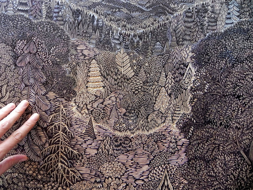 Artists Spent Almost 2 Years Carving This Epic Forest Landscape Out Of Wood