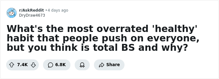 "What's the most overrated 'healthy' habit that people push on everyone, but you think is total BS and why?" the netizens asked. Turns out, people have lots of opinions about what a healthy lifestyle really looks like!