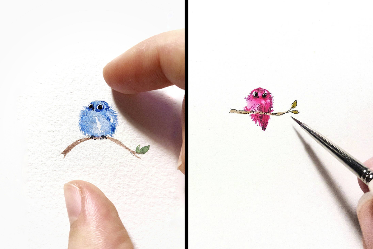 A couple of months ago I wrote my story about how I started painting owls. Time goes by, and I can't stop! My brain is continuously giving me more and more ideas. Some new beauties emerged: tiny (around 1 cm) fluff series.