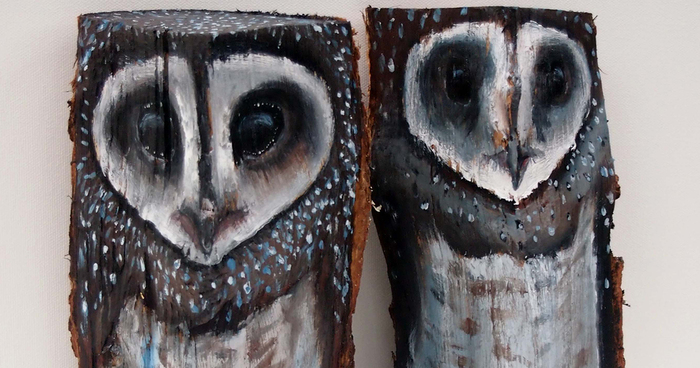 Hi eweryone! I am Saša Montiljo, painter from Belgrade. I work mostly in oil on canvas technique, but once I saw a piece of firewood in the form of an owl, and since then whenever I get firewood I choose the most interesting pieces and paint them. It’s always owls that I see in them. In nature owls are mimics the form of a tree and that’s the whole trick.