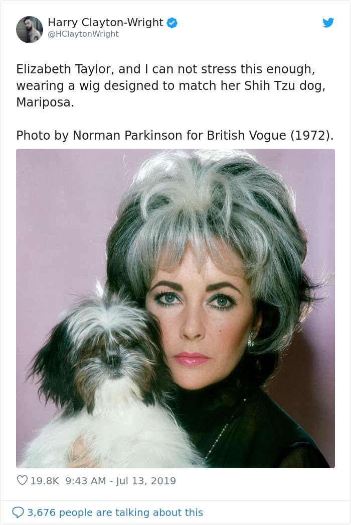 There is a classic scene in the film '100 Dalmations' where all the owners are walking their dogs and each pair looks basically identical. Well, this isn't just a funny cartoon depiction, as it turns out humans and their canines often look alike. Twitter user Harry Clayton-Wright took to the platform to share a photo of the iconic and stylish actress Elizabeth Taylor and her pet Shih-Tzu sporting matching hairstyles - and the likeness is uncanny.