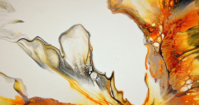 In this relaxing paint flow, soft gold drifts across a white canvas, guided by air, gravity, and time. The colors move gently, forming quiet shapes and open spaces — nothing to solve, nothing to rush.