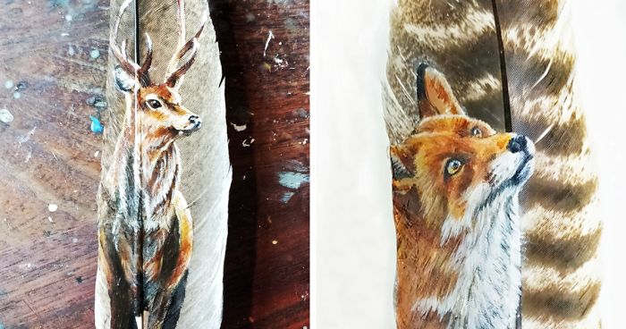 I Started Painting On Feathers In 2013, Here Is A Selection Of My Favorite Feather Paintings From Last Year (24 Pics)