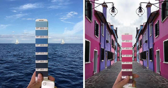 "As a graphic designer, I've always loved the Pantone fan decks, although more for their joyfulness and color combinations than for their intended purpose," Antoni told Creators. "So it happened one day that I took a particularly colorful picture and tried to combine it with the related Pantone color. Initially, I would publish the occasional picture once in a while, but now about one-third of my published photos are produced this way."