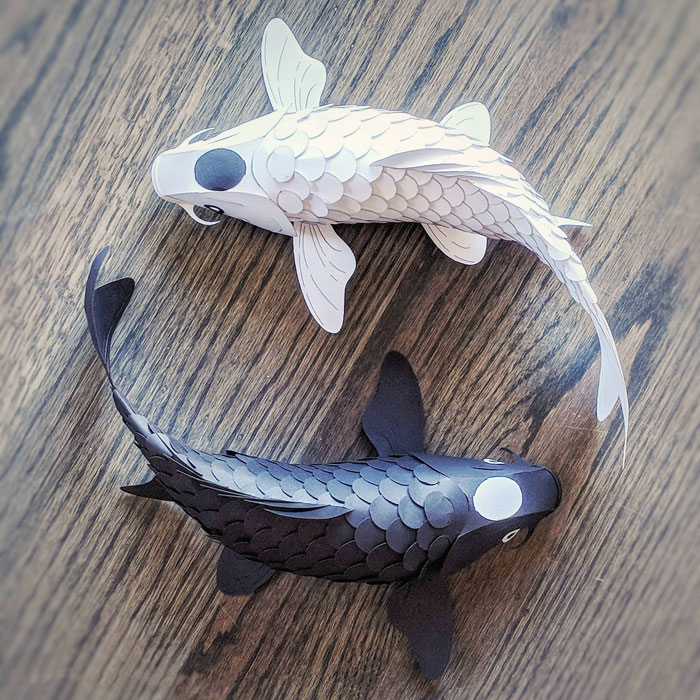 I Designed Some Posable Koi Made Only From Paper, No Glue Or Tape. They Can Bend In Any Direction