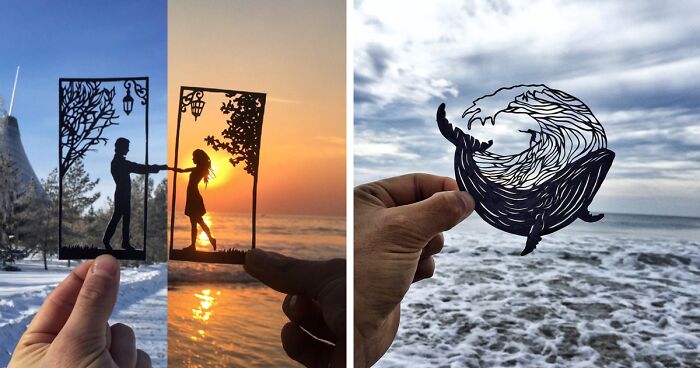 The first time I tried the paper/leaf cutting technique was in 2013 as a part of my own art project called 100 methods of drawing. I use different techniques and materials to create drawings. Since the beginning I have already tried over 70 methods including food art, pointillism, gypsum, pencil carving; I used nails, threads, jam, fluorescent tape.