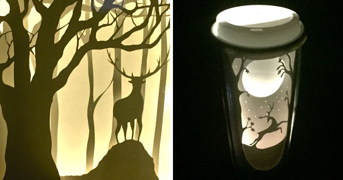 Love paper cutting and creates illuminated light boxes. I love creating something beautiful and share. All light-boxes start with an idea of image and drawing process. All art is belong to me including the wood boxes. When I can not find a wood box I place them into Starbucks cups :) you can see more works via instagram @lightofpaper