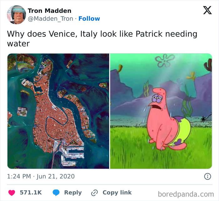 We call the phenomenon 'pareidolia,' and it's an interesting way our brains trick us into anthropomorphizing inanimate objects. Have you ever thought that the front of your car looks like a face? That's pareidolia. Want to see some crazy things people spotted and thought they looked like something else? Scroll away!