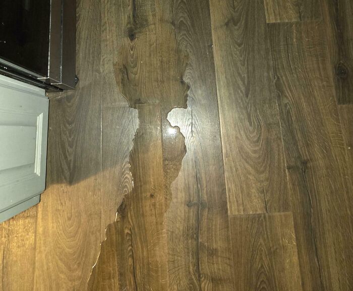 Spilled liquid on tiles resembling a face, demonstrating pareidolia effects.