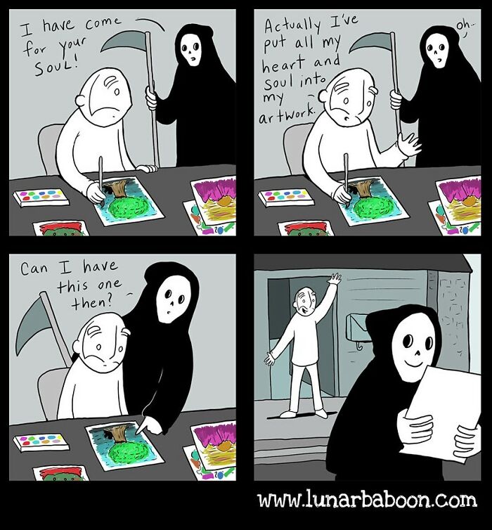 Chris Grady, the creator of Lunarbaboon, uses his own life as a dad to inspire his comics, but he also talks about everyday life and big feelings that everyone can relate to. His stories aren't just about being a parent; they also explore being an adult, facing challenges, and finding joy in small moments.