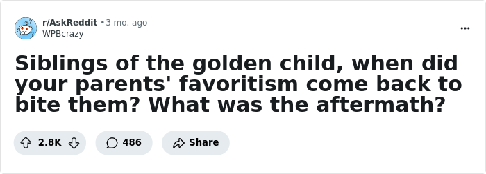 On the list below, you will find stories shared by siblings of the “golden children” who, in their parents’ eyes, could do no wrong. The netizens opened up about their experiences and feelings after a member of the ‘Ask Reddit’ community asked them about the time their parents’ favoritism came back to bite them. Scroll down to find their accounts of the aftermath on the list below, but keep in mind that some of the stories can get quite upsetting.