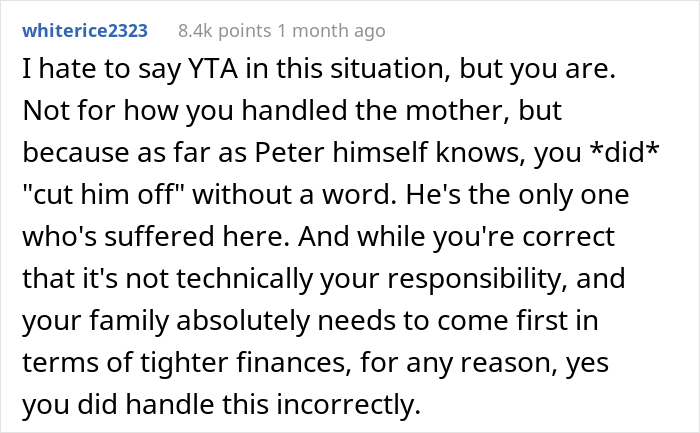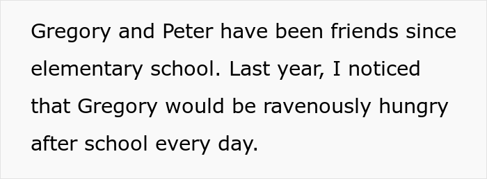 Load More Replies...Years ago, I was in Peter's situation. A friend would occasionally buy an extra sandwich, but then say he wasn't that hungry, and offer it to me. He was close enough to guess something was wrong at my house because I never had anyone over, but didn't know exactly what was going on. I had previously been in a church-run "children's home" that was worse than going hungry living with my mentally ill single parent. If someone had called CPS, I'd have worried about being sent back to institutional care and may have run away to live on the street. Situations can be complicated and reporting to CPS etc. can have unintended consequences (though I hope things are better now than when I was younger).