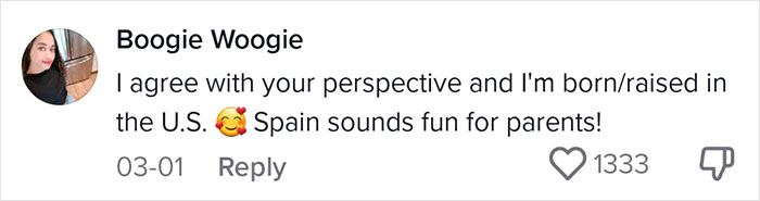 Load More Replies...This was actually really interesting. The main difference may be that people live closer to family in Spain, so kids are often not just kids, but relatives. Not only do kids get used to hanging out with adults, but adults get used to other people's kids being around. Perhaps in small town USA it would be similar? I can see how it happens the US way, when you're not having kids at the same time as your friends, including them with your childless friends could feel tricky.